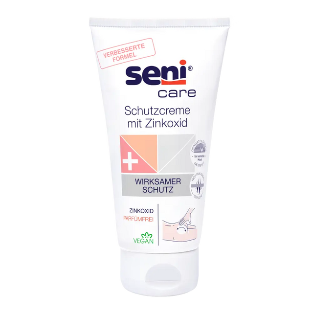 Die Seni Care Schutzcreme mit Zinkoxid wurde speziell entwickelt, um strapazierte, empfindliche oder gefährdete Hautpartien effektiv zu schützen, zu beruhigen und zu pflegen. Sie bildet eine schützende Barriere, die die Haut vor Feuchtigkeit, Reibung und äußeren Reizen schützt – ideal zur Unterstützung bei Inkontinenzpflege, Irritationen oder täglichen Pflegebedürfnissen.