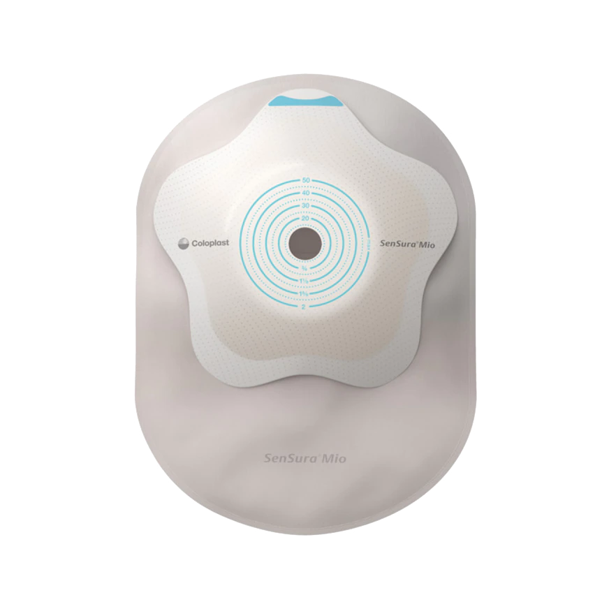 Der SenSura® Mio konkav ist eine Reihe von Stomaprodukten, die sich aufgrund des elastischen Hautschutzes und der gewölbten sternförmigen Stomaplatte nach außen gewölbten Körperformen perfekt anpassen. Der geschlossene Beutel ist ein Kolostomiebeutel mit konkaven Hautschutz, der zur einteiligen Versorgung verwendet wird.