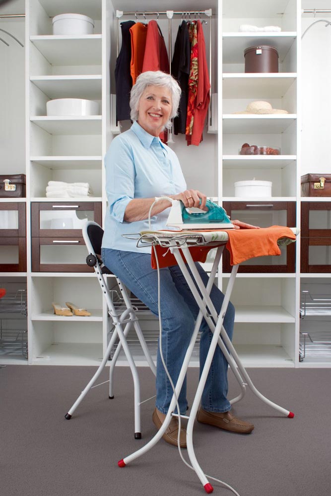 Die TÜV-GS geprüfte Stehhilfe stellt eine nützliche Alltagshilfe für verschiedenste Hausarbeiten dar. Dabei wurde dieses Hilfsmittel vor allem für Arbeiten konzipiert, welche ein langes Stehen erfordern, beispielsweise Bügeln. Aber auch im Beruf verringert die Stehhilfe die Belastung auf Rücken und Gelenke, wodurch eine höhere Leistung erreicht werden kann.