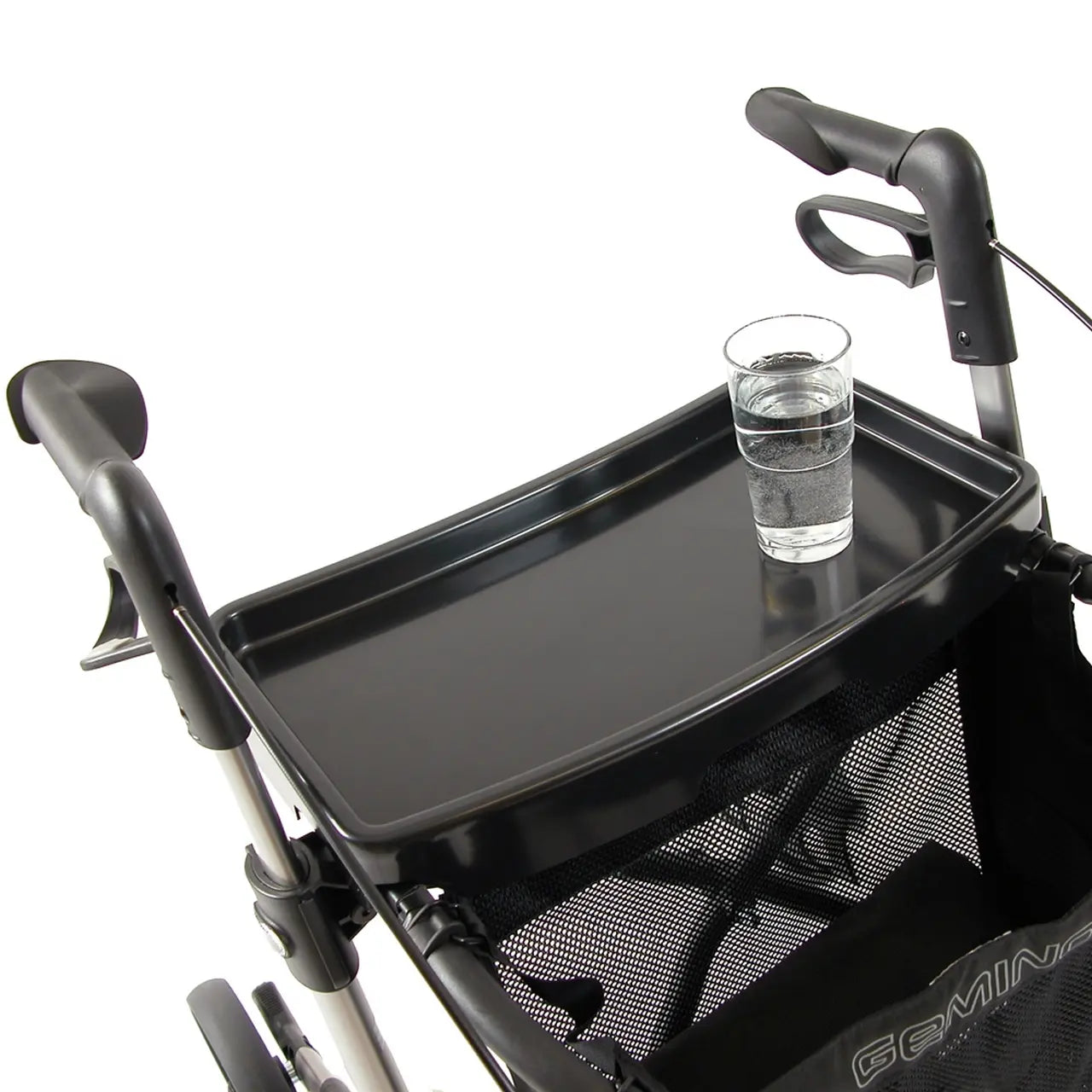 Das praktische Tablett für Ihren Gemino Rollator von Sunrise Medical, mit dem Sie Ihre Speisen und Getränke komfortabel transportieren.